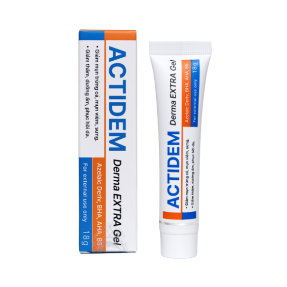 Actidem Derma Extra Gel là dòng dược mỹ phẩm chuyên biệt dành cho da mụn, hỗ trợ giảm mụn và cải thiện thâm sau mụn. Sản phẩm ứng dụng bộ ba hoạt chất nổi bật Azelaic Deriv – AHA – Niacinamide, giúp kiểm soát dầu nhờn, làm thông thoáng lỗ chân lông và hỗ trợ làm sáng da.